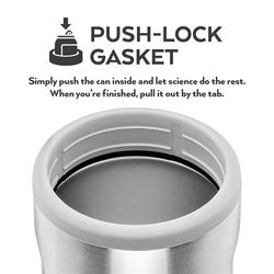 - Push-lock Gasket - Simply push the can inside and let science do the rest. When you’re finished, pull it out by the tab.